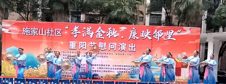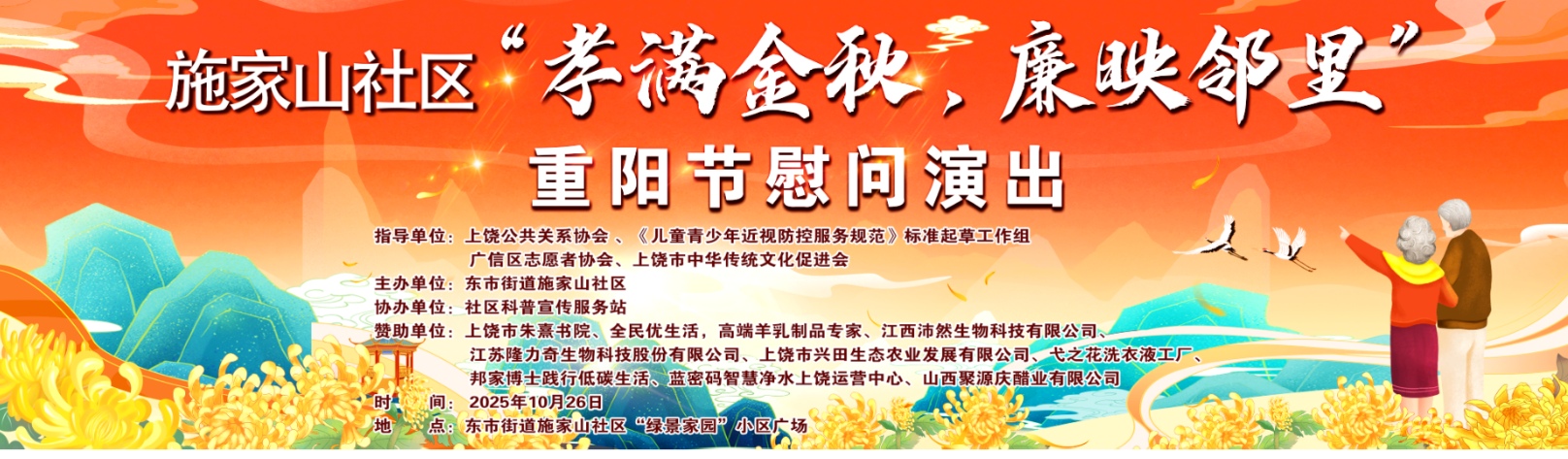 本站讯 网编 满泉报道 金秋送爽,丹桂飘香。10月26日上午9时50分,信州区东市街道绿景家园小区广场热闹非凡,“孝满金秋,廉映邻里”施家山社区重阳节慰问演出活动在此温情启幕。本次活动由上饶市公共关系协会、上饶市中华传统文化促进会、广信区志愿者协会指导,东市街道施家山社区主办,红之梦(江西)文化传媒有限公司与上饶市方硕文化传媒有限公司联合承办,九家爱心企业鼎力赞助,为社区居民尤其是老年群体送上了一场兼具文化韵味与温暖关怀的节日盛宴。